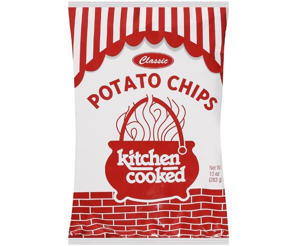 Description If it ain't broke, don't fix it. These Kitchen Cooked Classic Potato Chips bring that tried-and-true crispy, salty potato flavor you want for your party, bagged lunch or afternoon snack. Pair them with your favorite dip for a custom flavor creation.Contains: Does not contain any of the 8 major allergensMay Contain: Does not contain any of the 8 major allergensStore: In a Dry location at Room temperatureForm: ChipState of Readiness: Ready to eatPackage type: Individual item multi-servingExterior container material: PlasticRETIRED snack name 1: Potato chipsNet weight: 10.0 ouncesPackage Quantity: 1Classic style potato chipsKettle cooked for maximum crunch Great for parties, packed lunches and more Estimated shipping dimensions: 10.0INCH X 12.5INCH X 3.5INCH DPCI : 071-06-1755 UPC : 079088100162 TCIN : 47075803 Estimated shippimg weight: 0.625POUND
