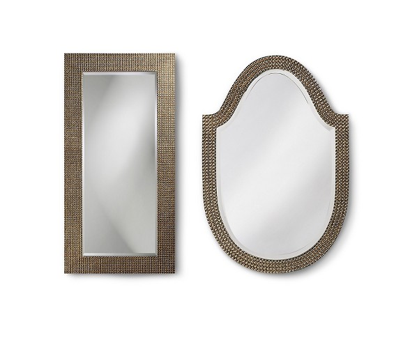 Description The Lancelot Mirror Collection is marked by fine beaded texture finished in bright metallics with a light iridescent sheen that highlights its unique surface. These large wall mirrors create striking focal points in an instant wherever they're hung.Features: Novelty (shape)Dimensions (Overall): 32.0 inches (H) x 21.0 inches (W) x 1.0 inches (D)Material: Resin (Frame)Weight: 13.0 poundsMaximum Extended Width: 21.0 inchesMount Type: Wall mountMaximum Extended Height: 32.0 inchesMirror Width: 18.0 inchesMirror Height: 29.0 inches