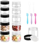 Accmor’s 10-piece set of clear acrylic cosmetic jars offers five sizes (3g to 20g) with durable, heat-resistant lids in black and white. Designed for easy filling and portability, these reusable containers come with 5 mini spatulas, making them perfect for travel, DIY beauty projects, and versatile storage.