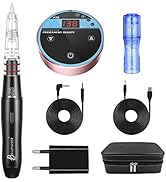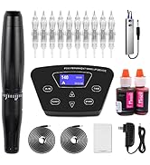 Permanent Makeup Machine - BIOAMSER Permanent Makeup Tattoo Machine Kit with Foot Pedal Touch Control Power Supply Rotary Tattoo Machine Pen Practice Skin 2 Microblading Inks 10pcs Cartridge Needles