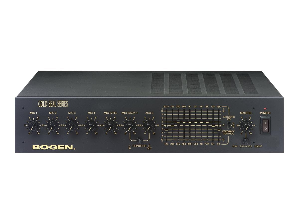 The Bogen GS100D is a 100W amplifier with an integrated EQ mixer, designed to deliver powerful, customizable audio performance. Ideal for professional settings, it ensures reliable signal processing and seamless integration into any sound system.