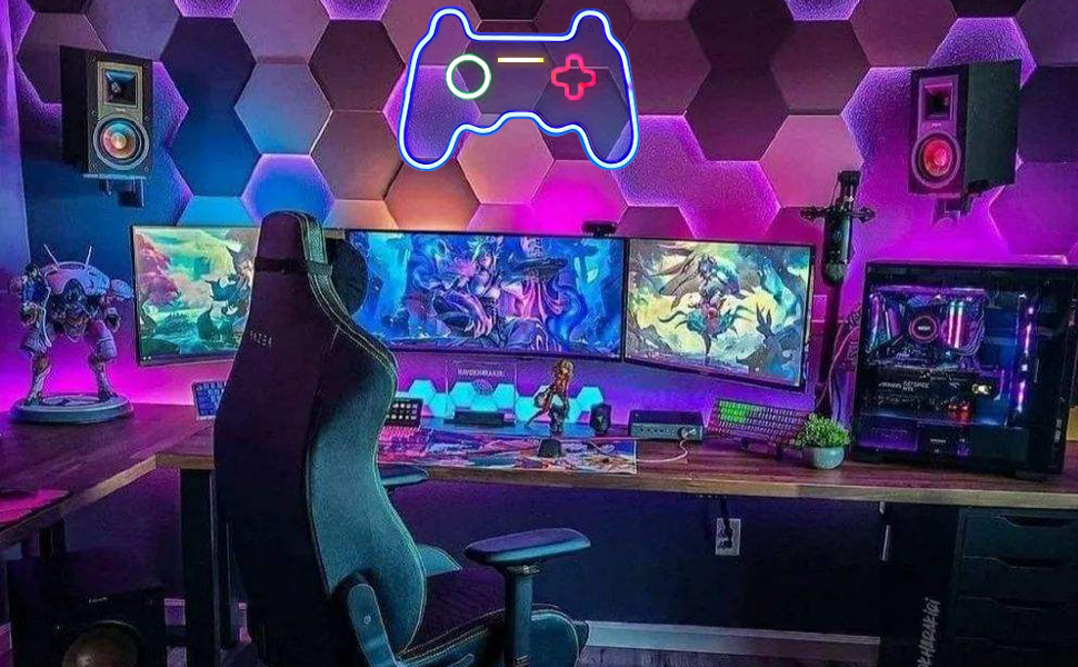 This 16''x11'' LED Gamepad Neon Sign features clear LED tubing on a transparent plastic backing, powered via USB for versatile plug-and-play use. Designed for easy wall mounting with pre-drilled holes and included hardware, it’s a stylish, lightweight (650g) gaming room accessory perfect for adding personality to bedrooms, parties, or gaming setups.