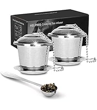 Numola Large Tea Infuser features a premium 304 stainless steel build with an upgraded threaded cover to prevent leaf escape, an ultra-fine 0.5mm mesh for clean tea, and an 8.7-inch extended chain with hook for versatile use in teapots and cups. Its large capacity accommodates loose tea leaves and spices, making it ideal for tea lovers and home cooks alike.