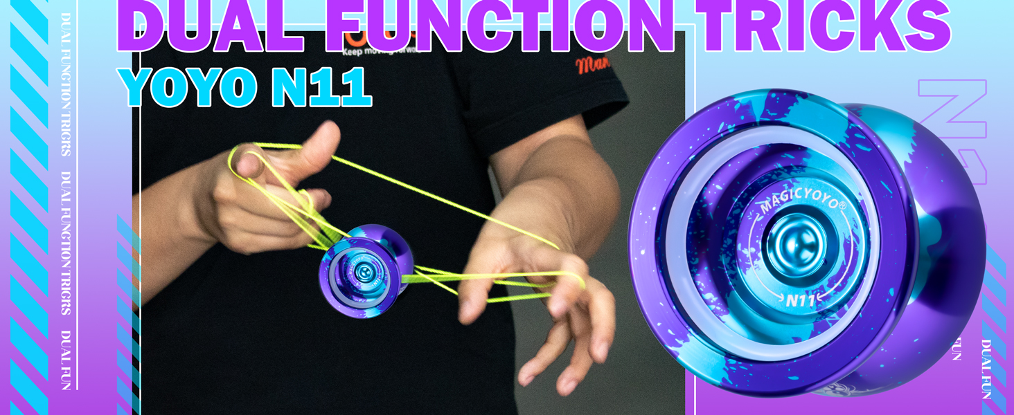 MAGICYOYOPack of 2 Dual Purpose Yoyo N11 Responsive Yoyo with Unresponsive Bearing for Advanced Player Adults + Removal Bearing Tool + 2 Bags +12 Yoyo Strings - Black Silver + Purple Blue