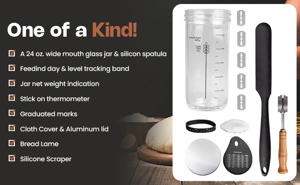 VITADOUGHSourdough Starter Kit 700ml - Reusable Sourdough Starter Jar Kit for Easy Bread Baking, BPA Free, Easy to Use & Clean Sourdough Bread Baking Supplies with 5 Blades