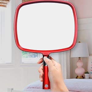 MIRRORVANA Large Hand Mirror with Comfy Handle - Big Handheld Mirror for Barber Shops, Hairdressing, Dental Offices, Home Self Hair Cutting and Make Up Application, Sparkling Red