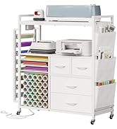 This rolling cart has been a fantastic addition to my limited craft space. Its’s all white and looks very chic. The two sliding drawers (made of cloth), multiple vinyl holder slots, and 6 side hooks make it easy to keep all my Cricut supplies neatly organized and within reach. I really appreciate the instruction pamphlet with drawings for every step. It made assembly simple and stress-free. All the parts were included (no missing pieces), and it took me about 45 minutes to put together. This cart feels sturdy, and it rolls smoothly from room to room. Overall, it’s both functional and stylish, and it keeps my Cricut machine and supplies tidy in one place. Highly recommend this affordable product for anyone looking for a storage cart!